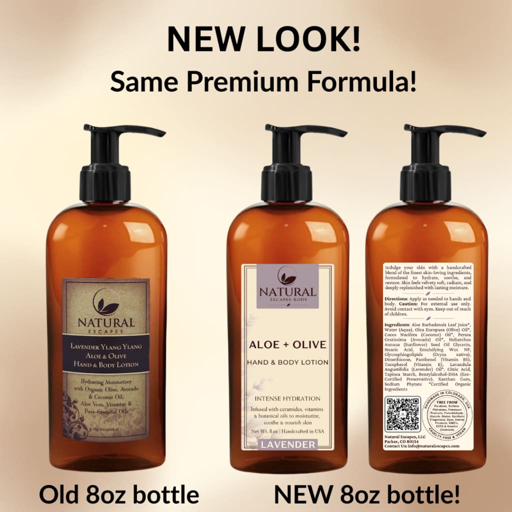 Experience soothing, natural skincare with our Lavender Aloe & Olive Hand & Body Lotion. Beginning with aloe vera juice as the first ingredient, it provides nutrient-rich hydration that calms and comforts dry, thirsty skin. Cold-pressed olive oil and nourishing coconut oil help restore softness and elasticity, while lavender essential oil surrounds you with a relaxing, spa-like aroma.